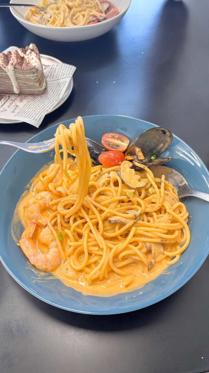 The offering extends beyond coffee and pasta, with simple cakes like Mint Chocolate and Tiramisu Mille Crepe that complement the drinks well, making it a spot to enjoy something sweet with your caffeine fix. Local patrons also appreciate the staff’s friendly, laid-back service — enough attentiveness to feel welcomed without pressure.
